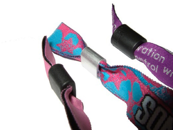 - Der Alu-Verschluss eignet sich für gewebte und bedruckte Festivalbändchen.