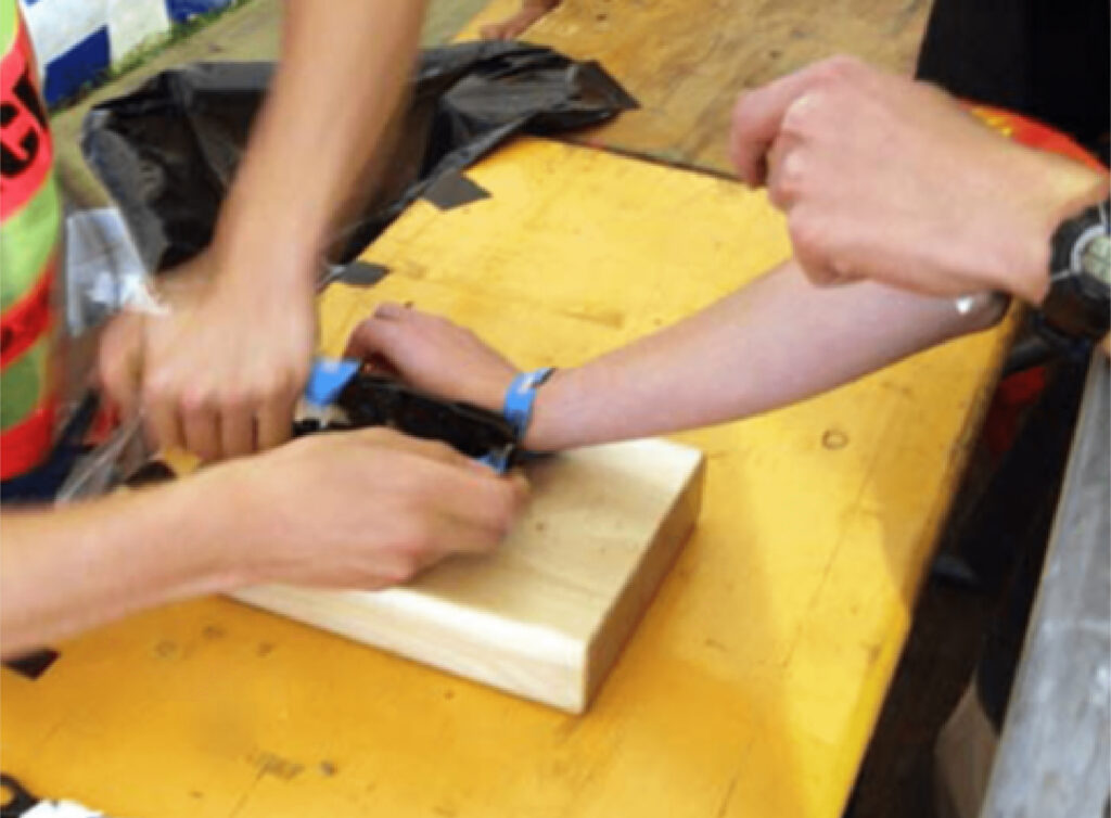 Höchstes Niveau an Sicherheit: beim Gebrauch wird das Festivalbändchen über die Hand des Trägers gezogen und manipulationssicher durch spezielle Schließgeräte, welche bei Heliotextil angemietet werden können, verschlossen.