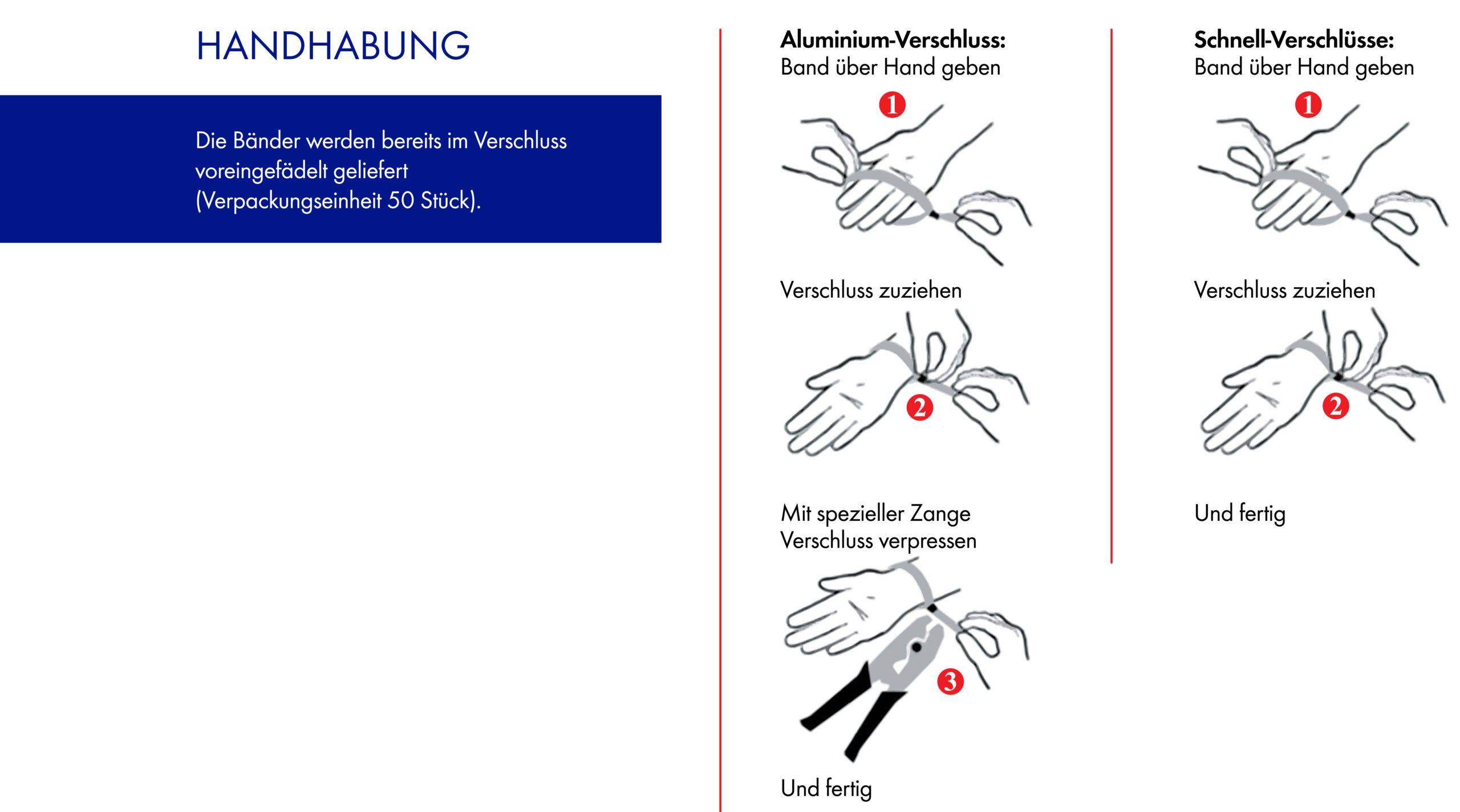 - Der SmartLock-Verschluss ist selbstschließend (d.h. es werden keine Verschlusszangen benötigt).